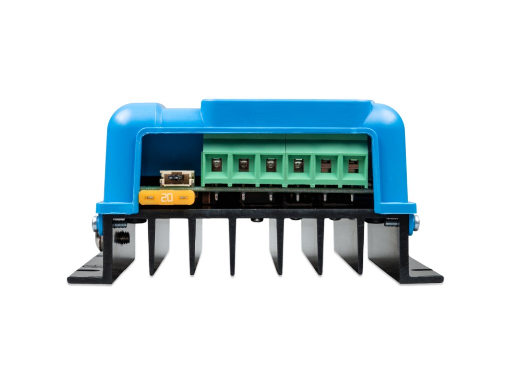 Maximální napětí na prázdno (označováno jako Voc) připojených solárních panelů nesmí překročit hodnotu 100V (pozor: s klesající venkovní teplotou roste napětí solárních panelů). Maximální vstupní zkratový proud FV panelů nesmí překročit hodnotu 20A, jinak může dojít k trvalému poškození. Správnou volbu vašeho BlueSolar/SmartSolar regulátoru dle parametrů fotovoltaikého pole si ověřte v našem konfigurátoru zde.